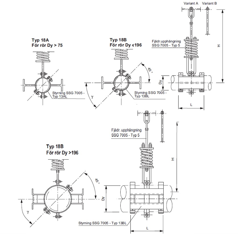 18AA & AB with guide 13AL for uninsulated pipes or protective insulation max 80 mm